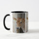 Bilder einer jungen Jersey-Kuh auf einer Schwarzweiss-Tasse.