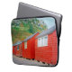Eine Reihe von roten Schuhen auf der Insel Jersey, Kanalinseln.