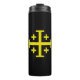 Jerusalem-Kreuz ist eine heraldische Kreuz- und Christliche Kreuzvariante, die aus einem großen, kreuzstarken Kreuz besteht, der von vier kleineren griechischen Kreuzen umgeben ist, eine in jedem Quadranten. Es diente als Emblem und Wappen des Königreichs Jerusalem aus den 1280er Jahren.