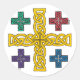 Eine keltische Knüpfarbeit, umgeben von vier kleineren Kreuzen. Das große Kreuz repräsentiert Jerusalem, und die vier kleineren Kreuze sind die vier Ecken der Welt.