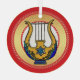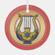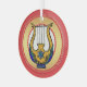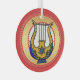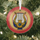 Advent, Jesse Baum-Ornament ist der Jesse Baum "David's Harp". Die Lyre-Form-Harfe ist das Symbol für den 13. Adventstag mit der Schriftzeichen-Vers von 1 Samuel 16: "Fülle dein Horn mit Öl, und geh, ich werde dich nach Jesse zum Bethlehemite schicken: denn ich habe mir unter seinen Söhnen einen König gegeben." Eine Darstellung der David's Harfe mit einem Star of David Dekoration. Farbige Abbildung für einen Jesse Tree Advent Calendar. Der goldene Blickpunkt der Folie.