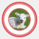 Kleines weißes Lamm in rotem und weißem Rahmen. Jesse Baum Aufkleber für Kunsthandwerk oder Weihnachtskarten.