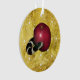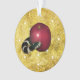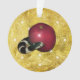 Der goldene Hintergrund dieses Ornaments, das Adam und den Garten Eden repräsentiert, hebt einen roten Apfel und eine schwarz-weiße Schlange hervor. Reverse ist goldgelb mit weißem geometrischem Schneeflockendesign.