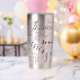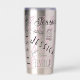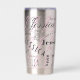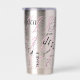 A custom name tumbler showcasing "Jessica" in multiple styles over a background script initial "J". The black, pink, and silver colors offer a timeless look, ensuring your drink remains yours with the prominently displayed name.