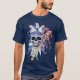 Der Jester-Schädel im Mardi Gras-Stil trägt eine Maske im New Orleans-Stil in Blau- und Silbertönen und hält einen goldenen Schädel-Jester-Scepter.