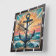 Jesus Anchor Waves Sunset Quadratische Wanduhr