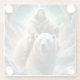 Der christliche Glaube Jesus sitzt auf einem Eisbär mit weißem Winterrobe, langes Haar und Bart. Im Schnee, der den weißen Bären mit den Mitarbeitern in der Hand befreit, draußen. Auf dem Eisgletscherberg. Mit Schnee und einem hellen Blick in den Nachthimmel. Auf diesem Foto der künstlichen Intelligenz.