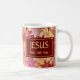 Personalisiert JESUS BEST GIFT JE Weihnachten Kaffee Tasse, mit Sternhaufen in Rot, Bordeaux, Rosa und Blassgelb. Die Nachricht auf der Vorderseite sagt JESUS BEST GIFT EVER in einem bordeauxfarbenen Panel. Auf der Rückseite finden Sie Platzhalter für einen Namen und kurze Begrüßung in einem Bordeaux-Panel. Der Name JESUS ist in einem subtilen Fliesenmuster im Hintergrund. Das wäre das perfekte Weihnachtsgeschenk für die heißen Todys vor dem Feuer. Teil der CHRISTMAS CLUSTER Kollektion, wo andere passende Gegenstände gekauft werden können, um großartige Weihnachtsgeschenke Sets zu schaffen.