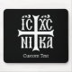 Stilisierte Briefe und Kreuz symbolisieren den Triumph Christi über Tod und Sünde. Vector Monochrom Symbol mit anpassbarer Farbe. Benutzerdefinierte Hintergrundfarbe. Eigener Text.