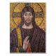Ein Mosaik Jesu Christi, das die Flamme des Heiligen Geistes hält. Vintage Kunst Ravenna Italien Mosaik in gedämpften Farben.