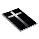 Maßgeschneiderte Notebooks, die einen schwarzen Hintergrund mit einem silbernen / grauen Kreuz in der Mitte der Seite mit dem Wort Jesus über das Kreuz geschrieben haben. Diese Christlichen themenbezogenen Notizbücher würden großartige Geschenke für Männer, Frauen und Kinder machen, die gerne schreiben, Notizen behalten, Zeitschriften behalten usw.