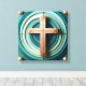 Bringen Sie Vertrauen und Stil zusammen mit diesem atemberaubenden 3D boho abstrakte Christliche Cross Leinwanddruck. Mit einem aquamarinen und türkisfarbenen Hintergrund, glatten 3D geometrischen Formen und subtilen Goldakzenten schafft diese elegante Wandkunst ein modernes und dennoch spirituelles Ambiente. Dieses minimalistische Design ist perfekt für Wohnzimmer, Gebetsräume, Kirchen oder als bedeutendes Christliches Geschenk geeignet und verleiht jedem Raum seine Schönheit und Inspiration.