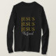 Einfach JESUS NUFF SAGTE Christlichen T - Shirt, entworfen mit dem Namen Jesus in goldfarbener Serifentypografie, und NUFF SAID in weißer Handschrift Typografie darunter. Dieser Text ist CUSTOMIZABLE, sodass Sie Ihren eigenen Namen erstellen, Ihren Namen hinzufügen oder ganz löschen können.