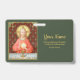 In diesem herrlichen Bild sitzt Jesus an einem Tisch, der das Set für Pessach ist und mit einem karierten blauen und weißen Tuch bedeckt ist. Er ist in einem auffälligen, weichen roten Kleid verkleidet. Es ist "Maundy" oder "Heiliger Donnerstag" und "Seines letzten Abendmahls" mit seinen Aposteln. Es ist der Moment, in dem Er das Heiligtum der heiligen Kommunion oder des Eucharisten einrichtet. + Die Figur Jesu ist vor einem dunkelroten Hintergrund abgeschieden, gemustert mit stilisierten Artischocken in Diamantformen. Die Stimmung hier ist feierlich. Jesus hebt seine Augen zum Himmel auf und hebt seine rechte Hand im Segen. In seinen links hält er einen großen Gastgeber, das Eucharistische Brot, über den Kalice, der mit Wein gefüllt ist. Im Lateinischen - in einem Banderole unter der Szene - sind die Worte der Schändung: "Das ist mein Körper... Das ist mein Blut" ("Hoc est corpus meum... Hic est sanguis meus"). In Erinnerung an Ihn, in jeder Messe, rezensiert der Priester diese heilige Handlung, die gewöhnliches Brot und Wein in Christus Körper und Blut verwandelt. + Image Credit (SAU 045): Antiquitätendruck Jesu Instituting the Heiligen Eucharist, ursprünglich in Chromolithografie von der Socièté de St. Augustin, Brügge, Belgien, Ende des 19. Jahrhunderts, aus der privaten Sammlung religiöser Ephemerien des Designers veröffentlicht.