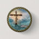 Jesus, der von einem christlichen Kreuzigungskreuz Button