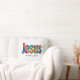 Pillow Beautiful colorful geometric design of the name of "Jesus" loves you (personalize message or scripture or name). Great gift for Christians who love the Lord and are proud to be His. This throw pillow is fun to give for religious celebrations, events and parties such as baptisms and summer BBQ's.