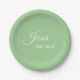 "Jesus hat aufgewachsen" geschrieben in elegantem weißen Skript wird den Ostertisch durch Glauben inspirieren. Diese einfachen, modernen Script-Papier-Teller werden auf Ihrem Ostertisch großartig aussehen. Die kräftige pastellgrüne Farbe stammt aus dem Foto der Frühlingsfoto-Blume. Fügen Sie ein paar geschnittene Blume, ein paar Blüten und ein Glas für eine schicke, stilvolle Ostertafel hinzu. Alle zeitgenössischen Typografie ist editierbar, wenn Sie dieses Osterferien-Geschirr anpassen möchten. Ideal für ein treuhänderisch gefülltes Osteressen oder einen Gottesaufgang, oder Auferstehung Sonntag Ansammlung, oder Christliche Wohltätigkeit oder Mission Dinner oder Bankett oder ein Garden Party Osterbrunch.