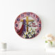 Celebrate the victory of the resurrection with this high-energy and inspiring wall clock. The central face features a high-definition graphic of a golden cross draped with a vibrant purple and red shroud, accompanied by blooming white lilies and the powerful "He Is Risen" proclamation. While the artwork beautifully captures the textured look of a palette-knife oil painting and the outer rim mimics the appearance of hand-sculpted pink timber, this is a lightweight and durable graphic timepiece rather than actual wood or layered plaster. The bold navy-blue numeric markers are set against a decorative pink border, ensuring the time is easy to read against the clean, textured-style background. This polished timepiece serves as a perfect focal point for a kitchen, living room, or seasonal display. It is a professional and meaningful self-gift for those wishing to celebrate the spiritual joy of the Easter season.