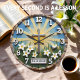 Celebrate the joy of the resurrection with this high-energy and vibrant spiritual wall clock. The central face features a high-definition graphic of a silver-style cross set against a radiant yellow sunburst and a serene blue sky. Blooming white lilies, lush green grass, and a symbolic white dove complete the scene above the "he is risen" proclamation. While the artwork masterfully mimics the textured look of a palette-knife oil painting and the outer rim appears to be crafted from multi-toned rustic river stones, this is a lightweight and durable graphic timepiece rather than actual stone or layered plaster. The bold white numeric markers provide exceptional contrast against the colorful background, ensuring the time is easy to read at a glance. This professional timepiece serves as an inspiring focal point for any living space, making it a meaningful self-gift for those celebrating the Easter season.