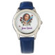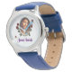 Kinderuhr aus Edelstahl mit blauem Lederarmband