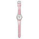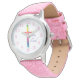 Im Gesicht dieser niedlichen Uhr befindet sich ein regenbogenfarbenes religiöses Kreuz mit den Worten "Jesus ist der Herr" in blauer Schrift. Die Ziffern, die die Stunde und Minuten angeben, sind in einem blassrosa.