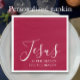 Jesus ist der Grund für die Saison. Mit dieser stilvollen, einfachen und dennoch eleganten Serviette können Sie den Grund für die Saison teilen. Diese Christliche Weihnachtsserviette ist schön. "Jesus" ist in modernem Drehbuch geschrieben mit "der Grund für die Saison" in eleganter einfacher Typografie. Die Textfarbe ist weiß auf einem tiefen roten Hintergrund. Diese Weihnachtsserviette wäre ideal für Ihr Weihnachtsessen oder für Ihre Familie. Jesus. Gottes Geschenk. Kam zu Weihnachten auf die Erde. Es würde gut Anzug zu Kirchengruppen und Bibel-Studiengruppen und eine Glaubensgemeinschaft erfüllte Familie. Das minimalistische Skript ist bearbeitbar.