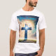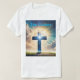 Verkünden Sie Ihren Glauben an Jesus als Mittelpunkt Ihres Lebens und der Welt mit diesem schönen Christlichen T - Shirt. Das Bild zeigt das Universum im Kreuz und ein brillantes Sonnenlicht-Set in einem hellen Himmel dahinter.