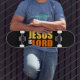 Jesus ist Lord auf schwarzem Hintergrund in den Farben gelb, orange und schwarz Deck für Extremsportler, die dem Meister dienen.