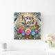 Diese lebendige, quadratische Wanduhr zeigt den strahlenden Text "Jesus ist mein Herr und Erretter", der durch einen Ausbruch göttlichen Lichts erhellt wird. Es ist von einer wunderschönen Anordnung rosa und blauer Blumen umgeben, mit eleganten Schmetterlingen, die herumflattern. Dieses spirituelle Kunstwerk schafft eine aufregende und ruhige Atmosphäre für jede Zuhause.