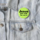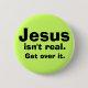 Ein grüner Knopf mit "Jesus ist nicht wirklich. Erhalten Sie über ihm." gedruckt auf ihm.