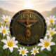 This round wall clock features a detailed, embossed metallic design of Jesus on the cross, surrounded by ornate scrolls and stars. Two smaller crosses are symmetrically placed, with "JESUS" at the top and "JOHN 3:16" at the bottom. The rich, bronze-like finish gives this clock a timeless and reverent appeal, perfect for spiritual reflection.