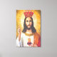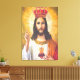 Jesus King Wrapped Canvas hat Jesus mit den Armen in der Luft und einer roten Krone auf und er hat ein rotes, orangefarbenes und weißes Outfit mit einem Herz und Kreuz auf seiner Brust.Dies ist ein Vintages Foto aus dem frühen 1900