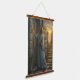 Jesus klopft an einer rustikalen Tür Wandteppich Mit Holzrahmen