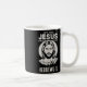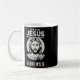 Jesus konfrontiert, wie Jesus seinen Kaffee zu heb Kaffeetasse