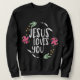 Jesus Liebe Sie mit runder Blume Grafik Sweatshirt