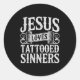 Jesus Loves Tattooed Sinners Christian Faith Inked Runder Aufkleber