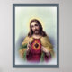 Jesus zeigt die Wunden an seinen Händen und seinem Herz mit leuchtendem Kreuz. Vintage religiöse Kunst.