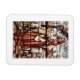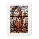 Ein Vintages Buntglas in mehreren Farben. Jesus steht mit seinem Stab, der ein Lamm hält, während zwei andere Schafe Ihn sehen