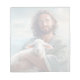 Dieses Notizbuch wird mit einem Kunstdruck von Jesus gezeigt.