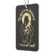 Silhouette of Jesus holding a sheep. Custom background color. Custom text on both sides.