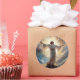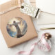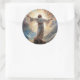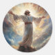 Rundaufkleber wird mit einem Kunstdruck von Jesus in seiner Herrlichkeit gezeigt. Großer Aufkleber gezeigt. Passen Sie dieses Objekt an oder kaufen Sie, wie es ist. Lizenziertes Bild