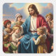 Jesus Surrounded by Children Quadratischer Aufkleber