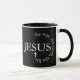 Christliche Tasse zeigt ein modernes minimalistisches Schwarz-Weiß-Design mit dem kraftvollen, inspirierenden Christlichen Zitat von Johannes 14:6 "Jesus spricht zu ihm, ich bin der Weg, die Wahrheit und das Leben: Kein Mensch kommt zum Vater, sondern von mir."