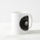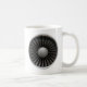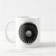 Vorderansicht eines modernen Motors mit Jetturbinen, der die Lüfterschaufeln und den glänzenden silbernen Motor-Kuscheln zeigt. Turbofan-Motoren werden häufig auf kommerziellen Jetlinern für ihren hohen Schub und ihre hohe Kraftstoffeffizienz eingesetzt, ebenso wie für weniger Rauschen als Turbojet-Motor.