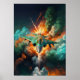 Erleben Sie den Adrenalinspiegel des "Feuersturmfurys", eines dynamischen Kunstwerks, das einen Kampfflugzeug einfängt, der durch eine Feuer- und Rauchwolke schneidet. Mit lebhaften Orange- und Grüntönen und auffallenden Farbtönen kombiniert dieses Stück Camouflage mit Chaos.
