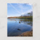 Schicken Sie jemandem eine Nachricht mit dieser Postkarte eines ruhigen Sees, die die Jetstreams der geschäftigen Reisenden widerspiegelt.