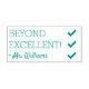 Dieses lustige Design aus Gummi-Briefmarke beinhaltet die positive Feedback-Nachricht "JETZT EXCELLENT!" und den Namen eines Lehrers oder Lehrers. Es verfügt auch über dekorative Karo. Es könnte von einem Lehrer, Pädagogen, Ausbildern oder Tutor genutzt werden, um anzuerkennen, dass ein Schüler eine außergewöhnliche Arbeit geleistet hat.