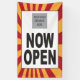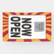 Jetzt Open Sign mit Logo und Sternexplosion Banner