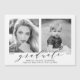 "Jetzt und dann" Foto-Absolvenzankündigungen mit dem Lieblings-Senior-Foto Ihres Absolventen (jetzt) sowie ein Baby-oder Kleinkind-Foto (dann). Ändern Sie die Jahre unter jedem Foto, um das Jahr des Abschlusses und das Geburtsjahr (oder das Jahr, in dem das Foto eingenommen wurde) widerzuspiegeln. Die modernen Graduierungsankündigungen zeigen den "Graduierten" in einem eleganten Script-Schriftart mit dem Namen, dem Namen der Schule und dem Unterrichtsjahr unten.