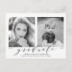 Unsere stilvollen "Now and Then" Foto Abschlussfeier Postkarten zeigen das Lieblings-Senior-Foto Ihres Absolventen (jetzt) sowie ein Baby- oder Kleinkind-Foto (dann). Ändern Sie die Jahre unter jedem Foto, um das Jahr des Abschlusses und das Geburtsjahr (oder das Foto des Jahres) widerzuspiegeln. Die Einladungen der modernen Graduiertenparty zeigen den "Graduierten" in einem eleganten Script-Schriftart mit dem Namen, dem Namen der Schule und dem Unterrichtsjahr unten. Die Postkarte kehrt um, um Ihre Rücksendeadresse und Graduiertengruppendetails anzuzeigen.